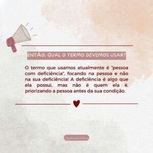 O termo ‘pessoas especiais’, apesar de bem-intencionado, pode reforçar estereótipos e contribuir para a exclusão, ao sugerir que pessoas com deficiência são ‘diferentes’ ou ‘separadas’ da sociedade.